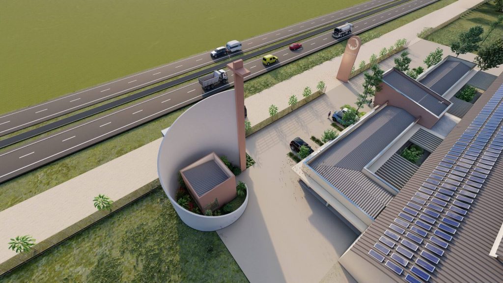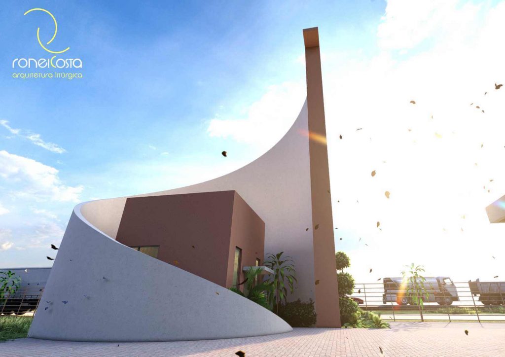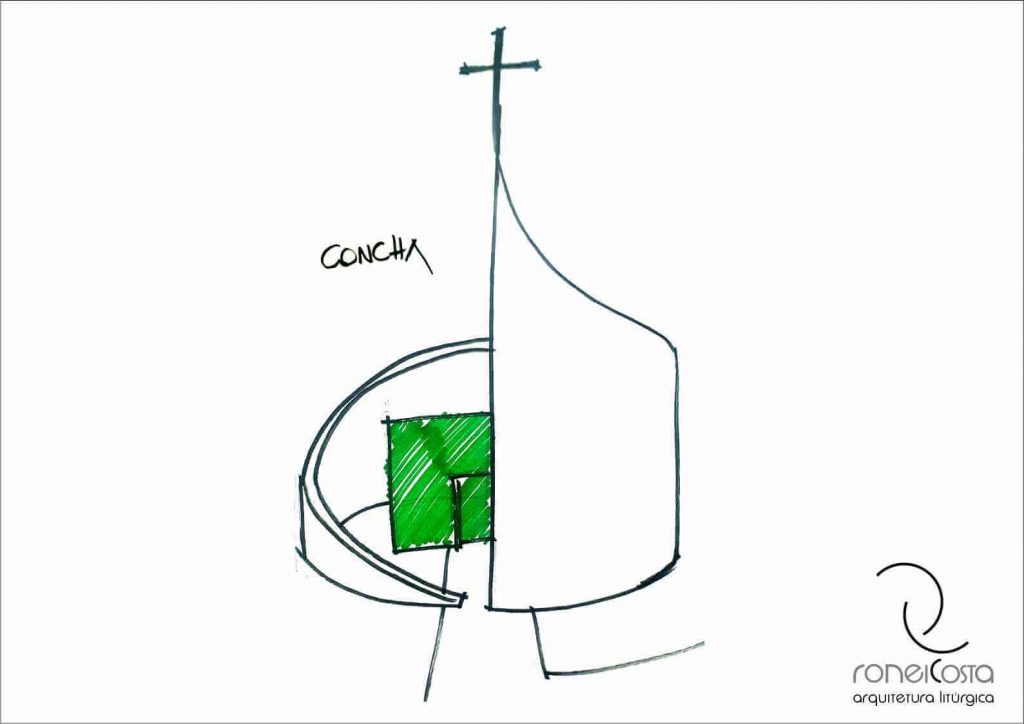 Assim nasceu a obra: a simbiose entre a funcionalidade da concha acústica e a simbologia da espiral ascendente, que conecta o mundo terreno e o mundo celestial, num itinerário progressivo e ascendente, rumo ao céu, passando, por óbvio, pela Cruz de Cristo.