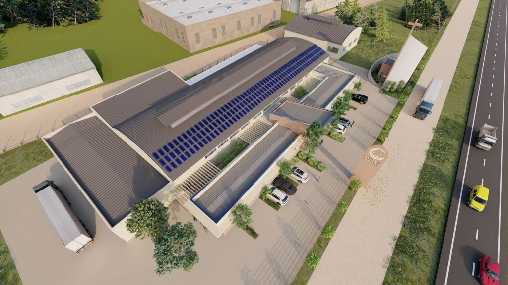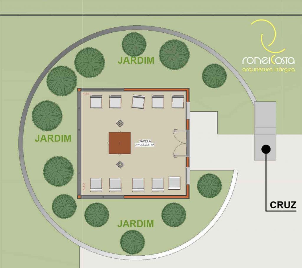 A mudança de local estava fora de questão. O proprietário desejava que a capela ficasse à frente da empresa, como anúncio primeiro. Então, busquei uma estratégia de isolamento acústico. Encontrei o conceito de concha acústica.